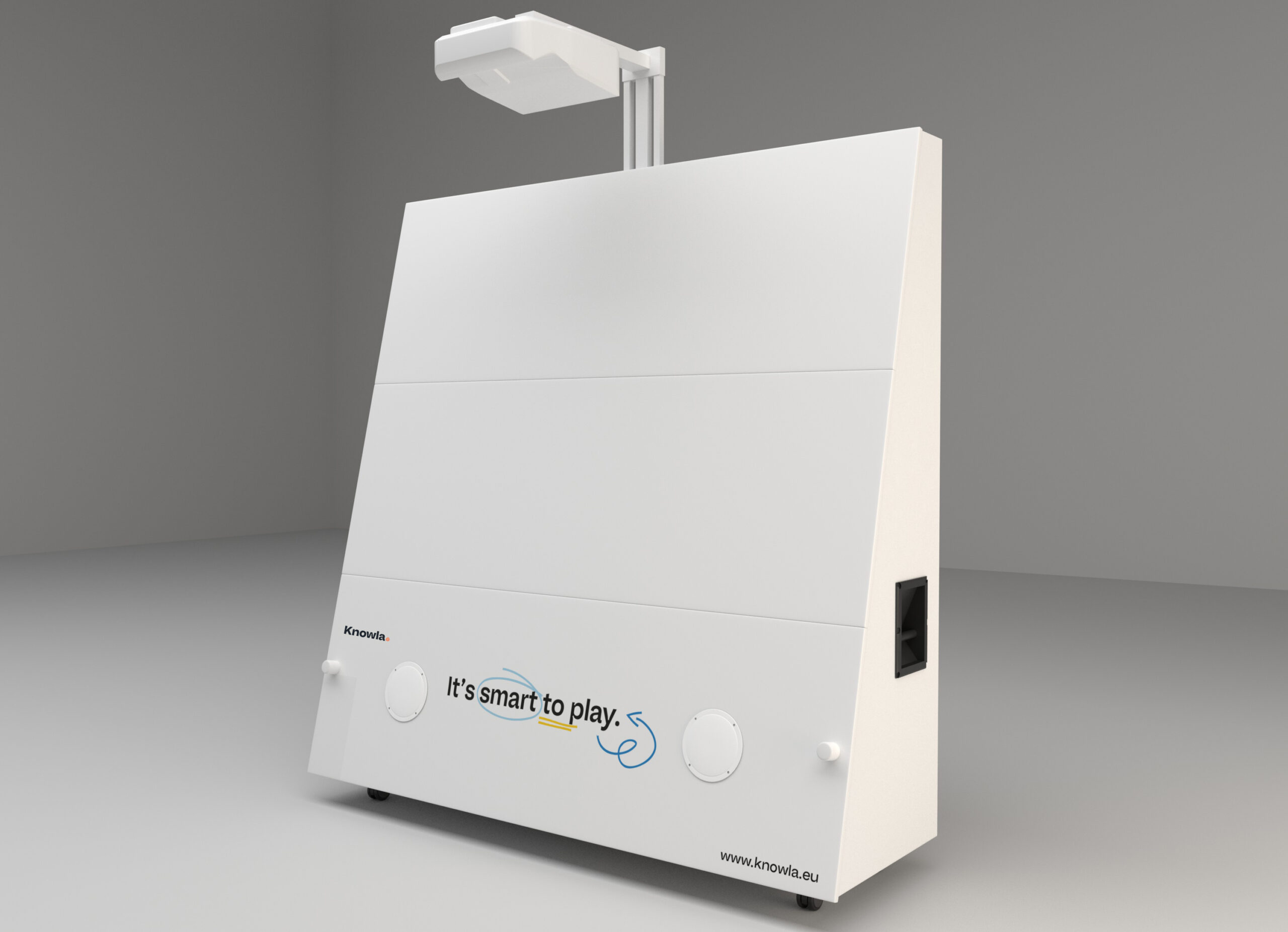 Die Knowla Box enthält einen eingebauten Spitzenprojektor und trägt das Branding ‚Powered by Epson‘.