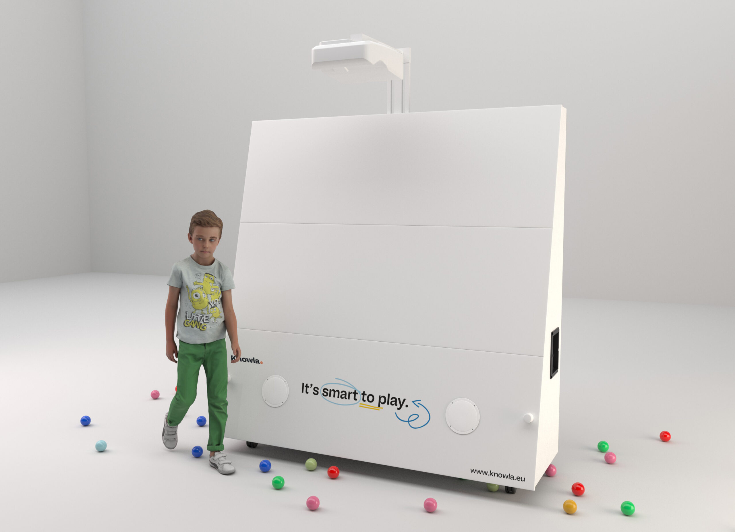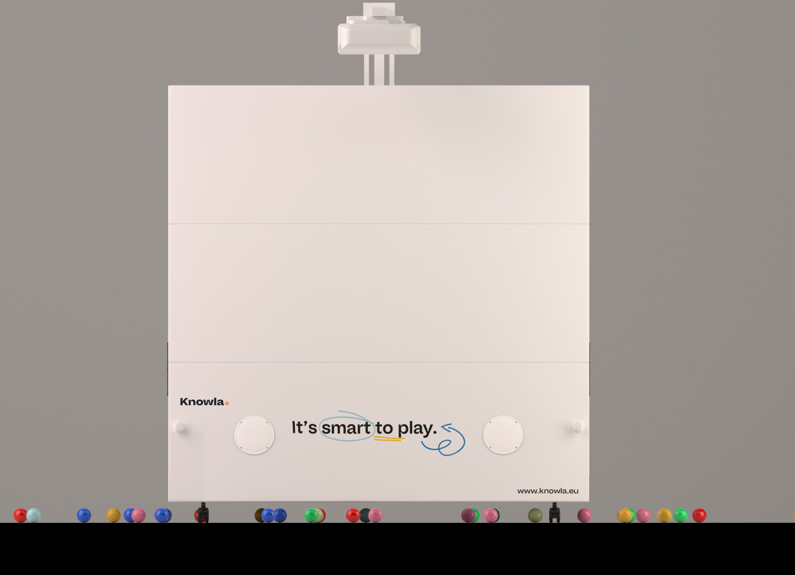 A multimedia, interactive device that is the heart of Knowla’s educational entertainment. Equipped with Epson’s top-quality ultra-short-throw projector with a boom mount, it allows you to project a bright, large-format image on an integrated wall. It provides various types of interaction with the displayed image: hitting balls, writing with pens, using the keyboard and touchpad.